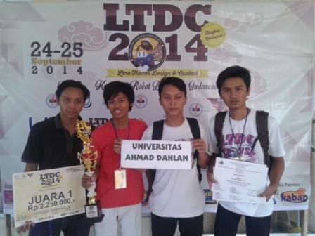 Tim robot UAD menurunkan 2 kategori untuk berlaga, yaitu mikrokontroller dan speed racer. Mereka di bawah pembinaan Program Studi Teknik Elektro, Fakultas Teknologi Industri (FTI). Tim mikrokontroller Tim Panzer_2ART diketuai Jehian Kamal Sri Artantyo dengan anggota Raivan Naufal dan Ibnu Atma Kusnadi. Sementara dari Tim RDC_Panzer_019 diketuai oleh Dian Taufik Hendra Nugroho dengan anggota Aan Marianto dan Ary Rachman. Tim RDC_Panzer Fira M_20 dipimpin oleh Mahmud Afif dan beranggota Ridho Kusuma Putra serta Tri Wahono. Selain itu, ada satu TIM speed racer yakni RDC_Panzer_Buki yang dipimpin oleh ketua tim Janu Prasetyo dengan anggota Adhi Saefudin dan Heru Hermawan. Dari tim yang diajukan tersebut, Tim Robot UAD berhasil melanjutkan tradisi berprestasi dengan memboyong tiga tropi dari event LTDC 2014. Selamat! (Doc)