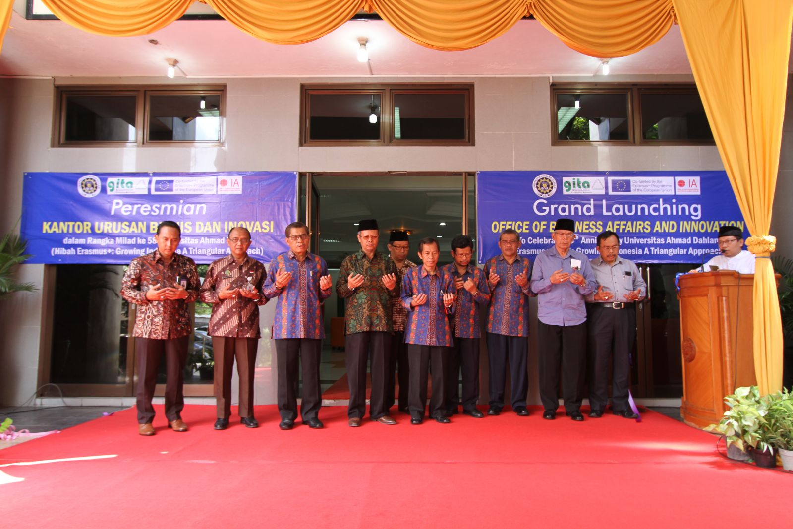 In the 58th Milad (Anniversary) series, Universitas Ahmad Dahlan (UAD) inaugurated the Office of Business and Innovation Affairs (KUBI) in campus 2 at Jln. Pramuka 42, Sidikan, Yogyakarta on Tuesday (11-27-2018). This office is UAD Growth Hub as a realization of Growing Indonesia Triangular Approach (GITA) project of Erasmus+ Grant. UAD is one of 11 universities in Europe and Indonesia that receives this grant.