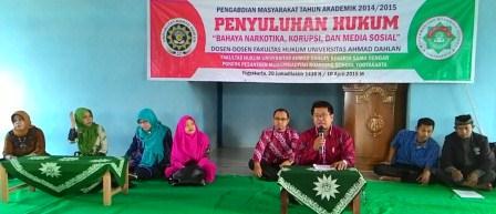 “Indonesia sudah masuk dalam wilayah darurat narkoba. Dilihat dari penyebaran dan jumlah korban, generasi muda menjadi sasaran empuk, baik sebagai pengedar maupun pemakai. Stres, galau, berbagai persoalan, gaya hidup, pergaulan, lemahnya pendidikan agama, dan keluarga yang tidak harmonis, dapat menjadi penyebab generasi muda terjerumus dalam lingkaran narkoba. Generasi muda harus mengenal narkoba dalam rangka untuk menjauhinya,” ungkap Gatot Sugiarto saat mengisi Penyuluhan Hukum yang diselenggarakan Fakultas Hukum Universitas Ahmad Dahlan (UAD) Yogyakarta bekerja sama dengan Muhammadiyah Boarding School (MBS) Prambanan, Yogyakarata, Jum’at (10/4/2015) lalu.