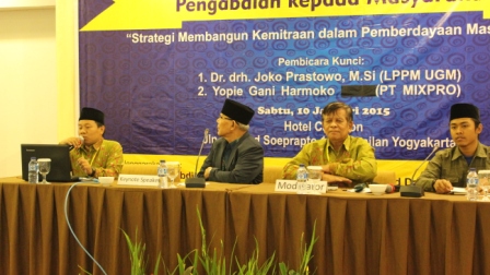 Menghadapi kendala pengusulan dan pelaksanaan Pembelajaran Pemberdayaan Masyarakat (PPM), Lembaga Pengabdian kepada Masyarakat Universitas Ahmad Dahlan (LPM-UAD) gelar seminar nasional bertajuk “Strategi Membangun Kemitraan dalam Pemberdayaan Masyarakat”, Sabtu (10/1/2015) di Cavinton Hotel Yogyakarta.