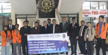 Rabu lalu (15/1/14), UAD kedatangan tamu dari Universiti Sultan Zainal Abidin (Unisza) Terengganu, Malaysia. Bertempat di Kampus 1, pihak UAD diwakili oleh Kepala Biro Kemahasiswaan dan Alumni (BIMAWA), Ir. Tri Budiyanto, M.T., memberikan sambutannya. Dalam sambutan tersebut, Tri Budiyanto menekankan pada visi UAD untuk menjadikan menjadikan mahasiswa mampu berprestasi sampai ke lingkup internasional dan berkarakter islami.