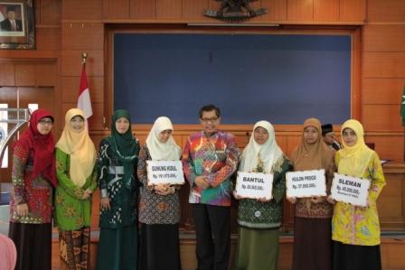 “350 juta rupiah, untuk guru TK Aisyiyah Bustanul Athfal (ABA) dan guru kelompok bermain” terang Dr. Kasiyarno. M.Hum dalam sambutannya pada penyerahan dana kepada guru-guru di Auditorium Kampus 1 Universitas Ahmad Dahlan (UAD) Kamis (24/7/2014). Sumbangan akan diberikan ke empat kabupaten se-DIY, yaitu Bantul, Sleman, Kulonprogo, dan Gunung Kidul.
