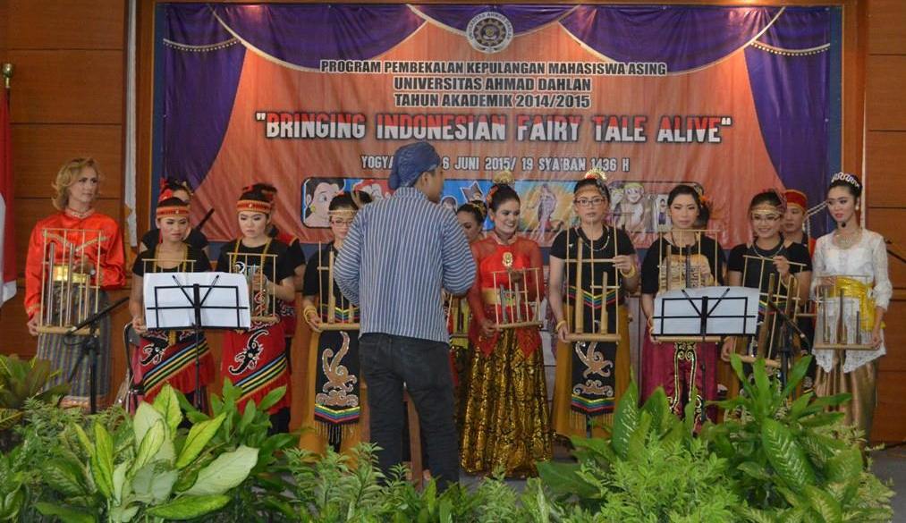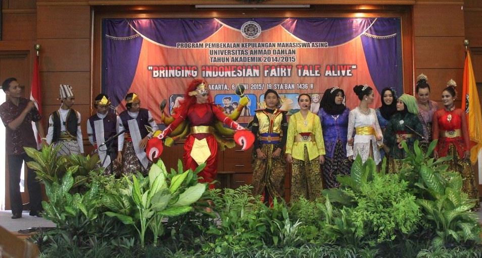 Sabtu, (6/6/2015), Universitas Ahmad Dahlan (UAD) menyelenggarakan Program Pembekalan Mahasiswa Asing Tahun Akademik 2014/2015 bertempat di auditorium kampus 1. Acara ini dihadiri oleh pejabat struktural UAD, dosen, dan sekitar 200 mahasiswa perwakilan BEM serta HMPS. Program Pembekalan Mahasiswa Asing tahun ini mengambil tema “Bringing Indonesian Fairy Tale Alive” dan menampilkan pertunjukan inti berupa drama “Ande-Ande Lumut” yang merupakan dongeng asli Indonesia.
