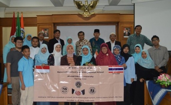 Penandatanganan MoU dengan dua sekolah dari Thailand, yakni Bannrodfai School, Pattaya, dan Witthayapanya, Bangkok, dilaksanakan Universitas Ahmad Dahlan (UAD) di ruang sidang utama kampus 1 Rabu (15/10) lalu.
